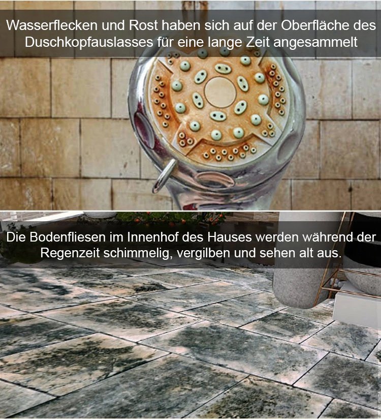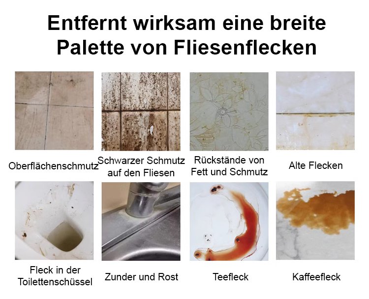 Egal wie hartnäckig die Flecken sind,es entfernt sie mühelos und lässt Ihre Fliesen wie neu erstrahlen.