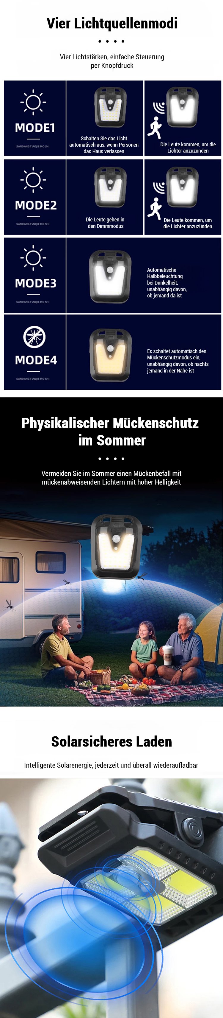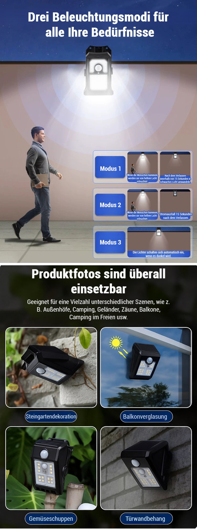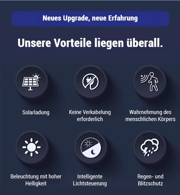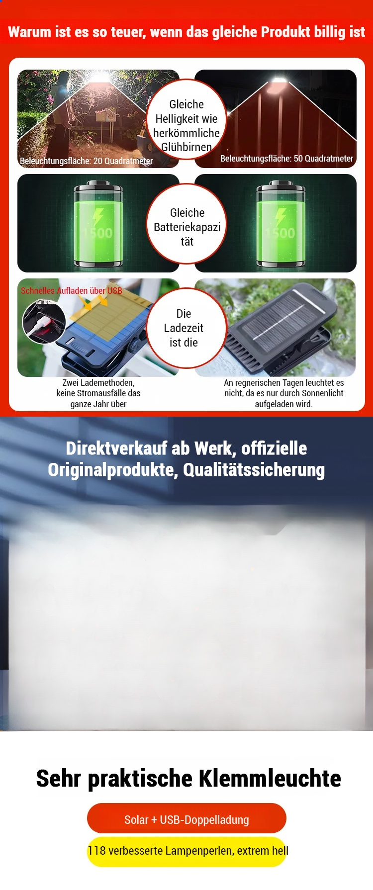 Wetterfeste Sensor-Solar-Klemmleuchte für Außenbereich